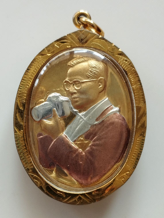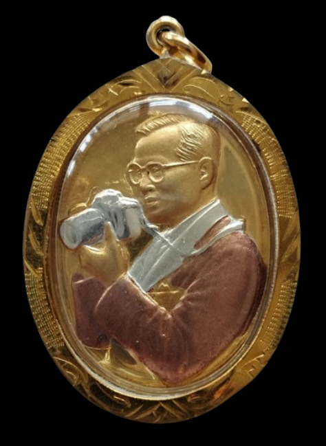 เหรียญที่ระลึก ร.9 พระราชพิธีฉลองสิริราชสมบัติครบ60ปี ทรงกล้องฉายภาพ เนื้อสามกษัตริย์ ปี2549 กรอบทองเลเซอร์ |