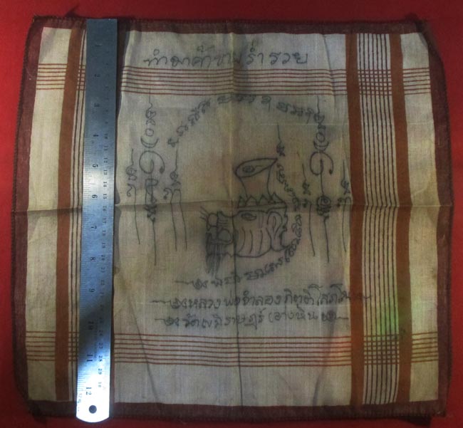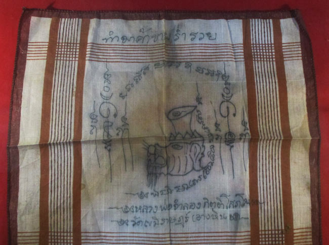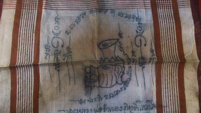 ชื่อพระเครื่อง ผ้ายันต์ หลวงพ่อจำลอง กิตติโสภโณ วัดเขมิราษฏร์ จารยันต์ด้วยมือ ครับ (พระบ้าน ครับ)