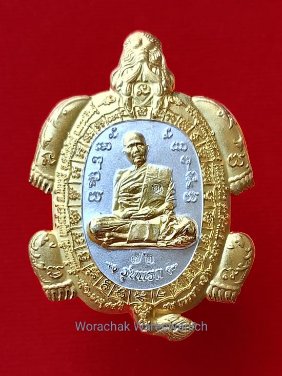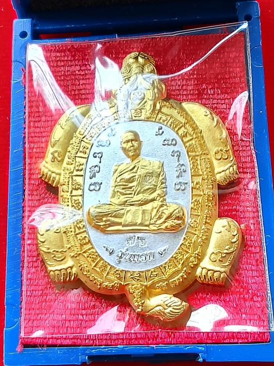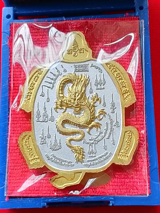 เหรียญพญาเต่ามังกร รุ่นแรก พระญาณวิสาลเถร (หลวงปู่หา สุภโร) หรือ หลวงปู่ไดโนเสาร์ วัดสักกะวัน อ.สหัสขันธ์ จ.กาฬสินธุ์ ปี ๒๕๖๒ เนื้อชุบสองกษัตริย์ ตอกโค้ดสังฆาฏิ เลข ๗๒ เลขสองหลัก รวมได้ ๙ มงคล ผิวสวยเดิม พร้อมกล่องเดิมครับ