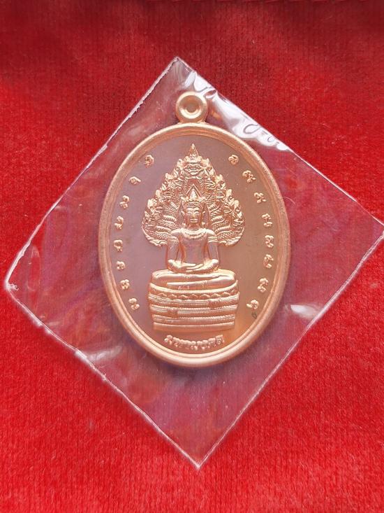 เหรียญนาคปรก มหามงคล ทองหนึ่ง ด้านหลัง พระนารายณ์ ทรงครุฑประทับพระราหู เนื้อทองแดง สมเด็จพระมหารัชมงคลมุนี (ธงชัย ธัมมธโช) วัดไตรมิตร กล่องเดิม