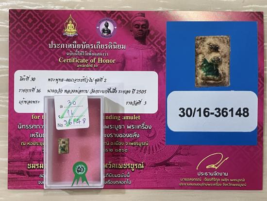 หลวงปู่ทิมร่วมปลุกเสก สร้างปี 2505 สวยสมบูรณ์ผิวเดิมๆ ไม่หักไม่ซ่อม รับประกันพระแท้ ดูง่าย พร้อมใบประกาศรางวัลที่3งานสมาคม