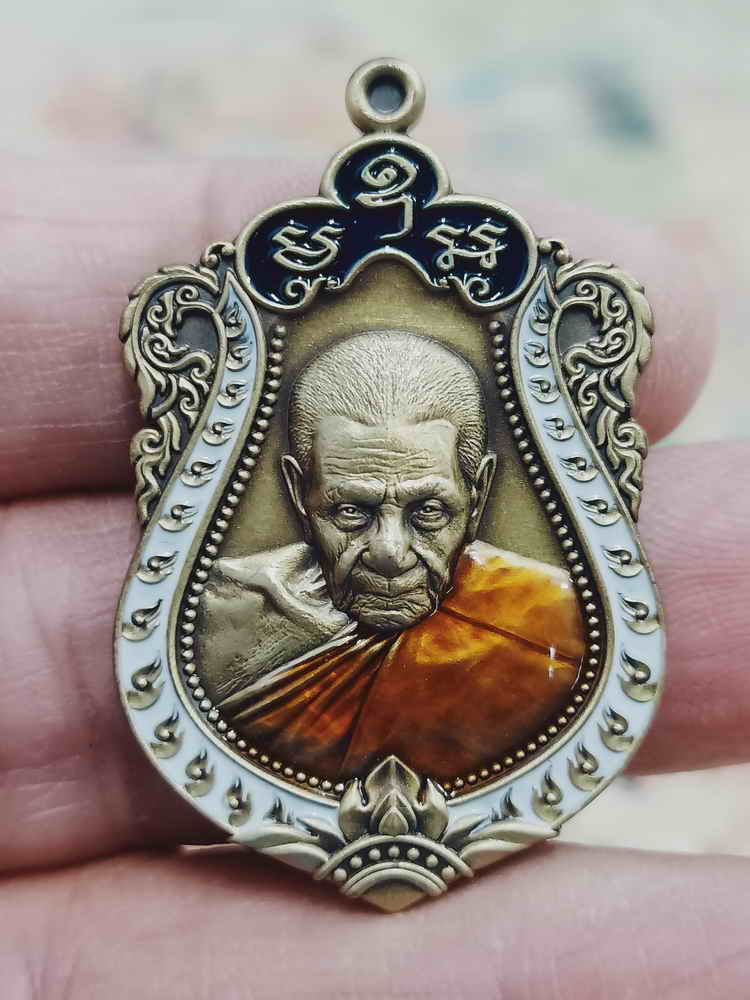 วัดใจ 100 เหรียญเสมาฉลองสมณศักดิ์ หลังพัดยศ หลวงปู่อิ่ม วัดทุ่งนาใหม่ จ.นครศรีธรรมราช 2566 ฝาบาตรซาติน ลงยาขอบ จีวร หมายเลข 30 กล่องเดิม