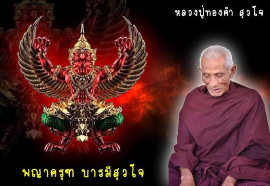 องค์พญาครุฑ บารมีสุวโจ หลวงปู่ทองคำ อาศรม สุวโจ อำเภอสำโรงทาบ จังหวัดสุรินทร์ เนื้อชนวนปีกทอง หมายเลข ๖๑๘ พร้อมกล่องเดิม