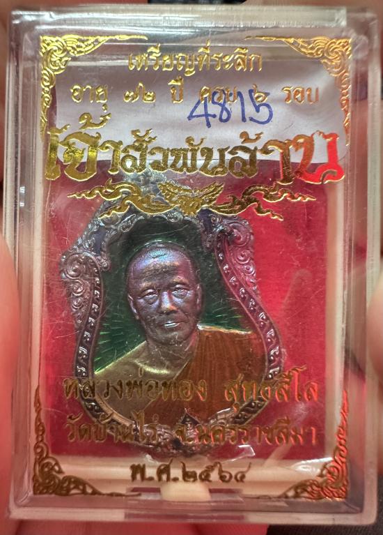 เหรียญที่ระลึก อายุ ๗๒ ปี ครบ ๖ รอบ เจ้าสัวพันล้าน หลวงพ่อทอง สุทธสีโล วัดบ้านไร่ จ.นครราชสีมา ปี ๒๕๖๔ ซีลเดิม ไม่ผ่านการใช้ พร้อมกล่องครับ