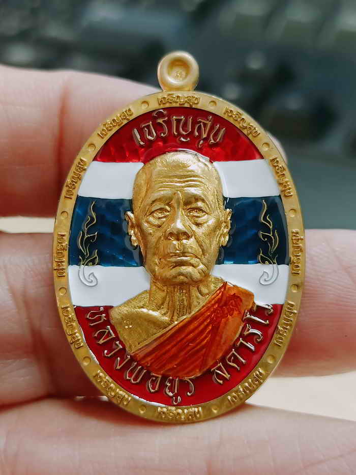 วัดใจ 100 PSGA เหรียญเจริญสุข งานบุญกฐิน หลวงพ่อยูร สคารโว วัดพนมเศษเหนือ จ.นครสวรรค์ ปี 2566 เนื้อทองเหลือง กนกข้าง ยงยาลายธงชาติ หมายเลข 174 กล่องเดิม ***ป๋องสุพรรณการันตี