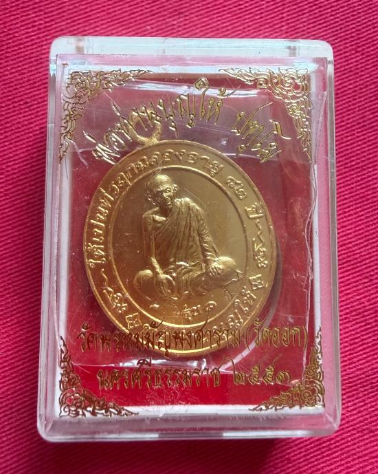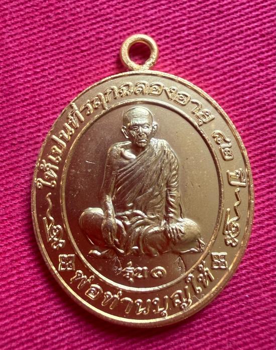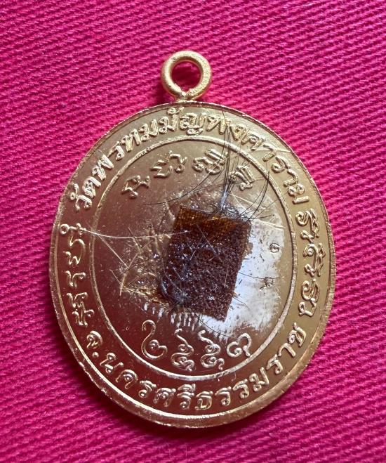 วัดใจไปเลย เหรียญหูเชื่อมพ่อท่านบุญให้ วัดพรหมมัญพงศาราม จ.นครศรีธรรมราช ปี 2553 เนื้อกะไหล่ทอง ติดจีวรและเกศา หมายเลข 61