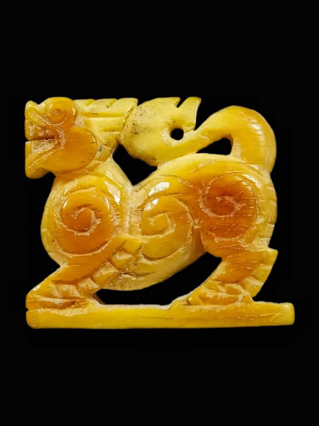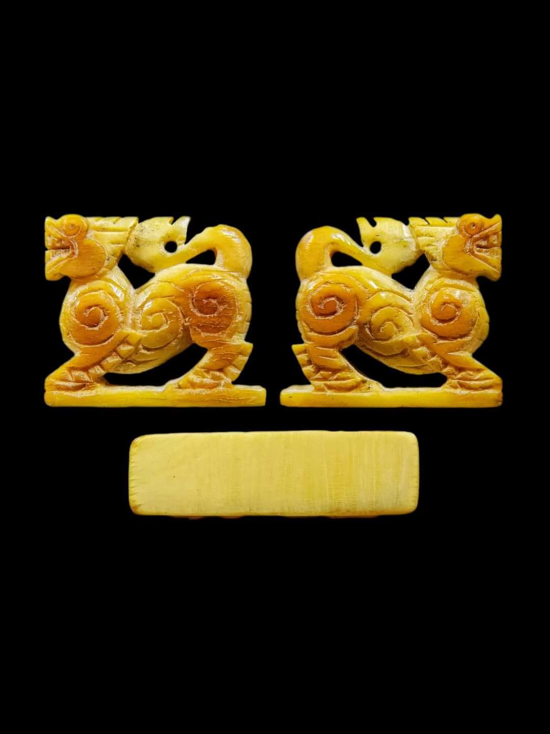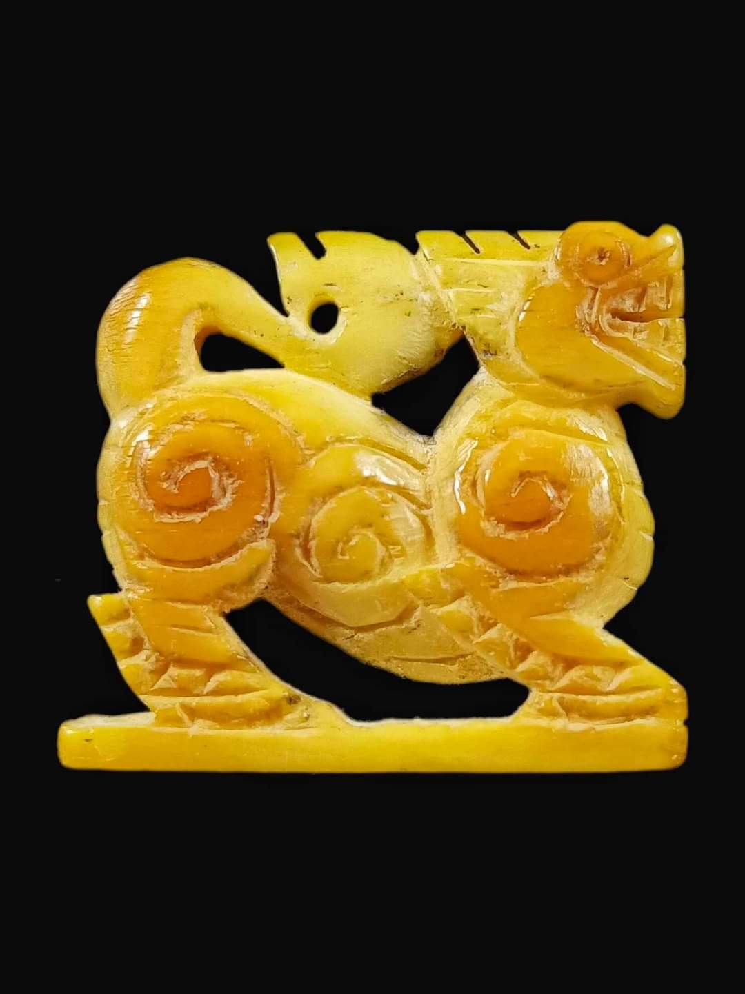 ชื่อพระเครื่อง สิงห์สามขวัญปากเจาะ งาแกะ หลวงพ่อเดิม วัดหนองโพ จ.นครสวรรค์ ขนาด 1.8 ซม.ปี 2470-2494