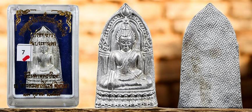 พระพุทธชินราชใบเสมา รุ่นประทานพร เนื้อชินเงิน หรือเนื้อปรอทขาว จัดสร้างขึ้นในปี 2547 มาพร้อมกล่องเดิมจากวัดครับ