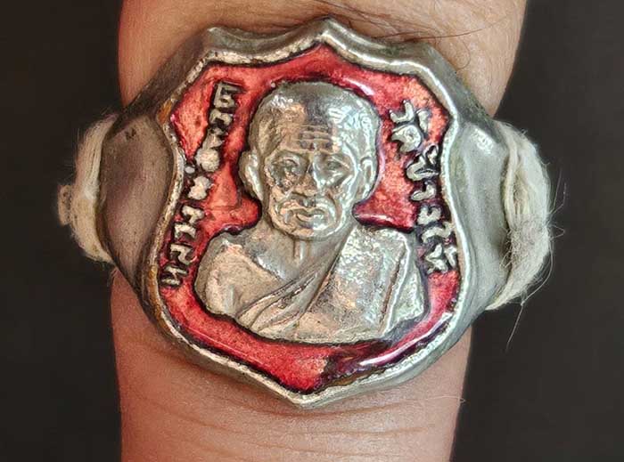 **วัดใจ**แหวนหลวงปู่ทวด ปี 2522 อัลปาก้าลงยาแดง หลังแบบ |