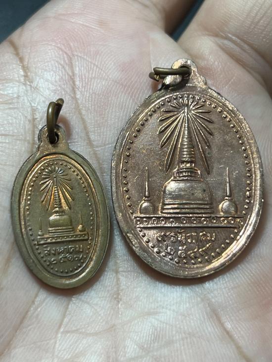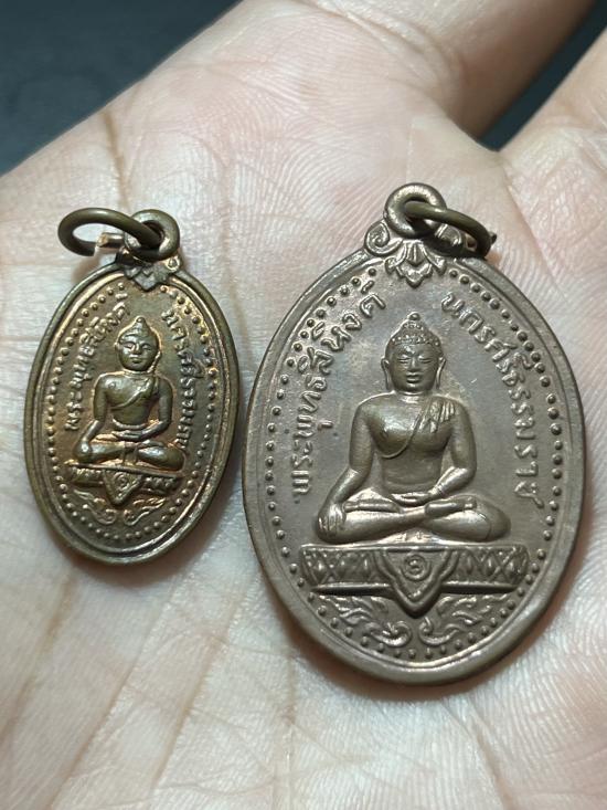 เหรียญพระพุทธสิหิงค์ เล็กปี17 กับ ใหญ่ปี49 นครศรีธรรมราช ผิวไฟ