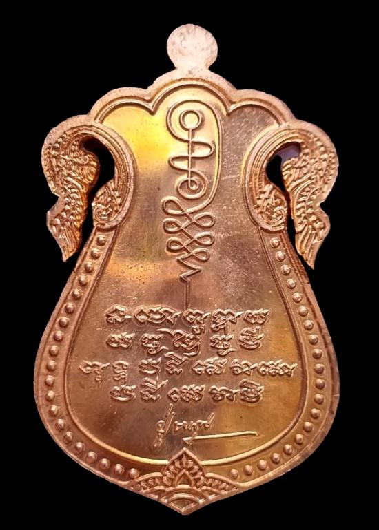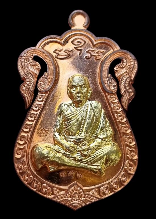 เหรียญเสมาฉลุหน้ากากทองฝาบาตรแจกทานในพิธีปี๖๑ ตอกโค๊ตตอกหมายเลข 852 วัดบ้านจานจังหวัดศรีสะเกษ หลวงปู่หมุน ฐิตสีโล จัดสร้างจำนวน 2,000 เหรียญ (2)