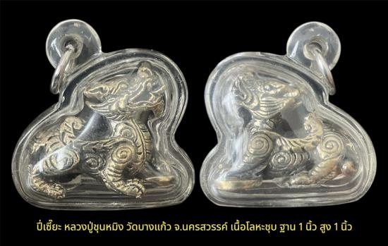 ปี่เซี๊ยะ หลวงปู่ชุนหมิง วัดบางแก้ว จ.นครสวรรค์ เนื้อโลหะชุบ ฐาน 1 นิ้ว สูง 1 นิ้ว เคาะเดียว