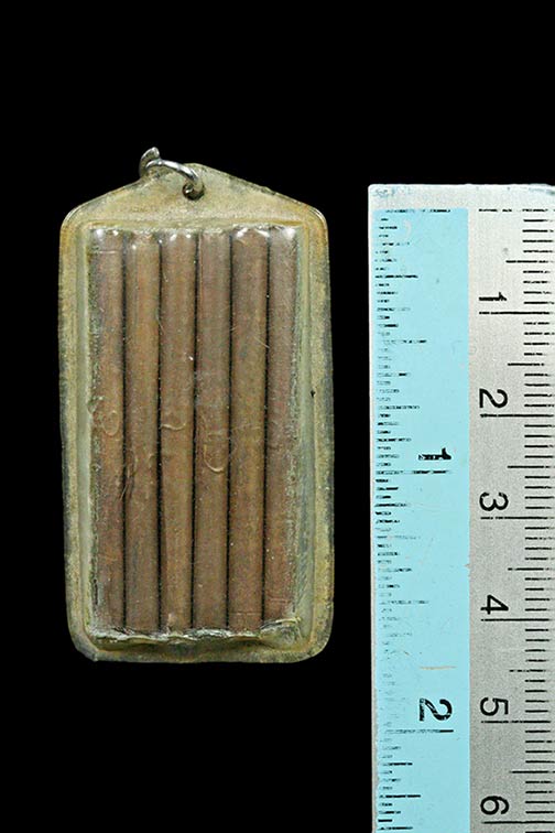 ตะกรุด 6 ดอก เนื้อทองแดง 1.5 นิ้ว เลี่ยมเก่า ไม่ทราบที่ |