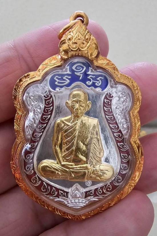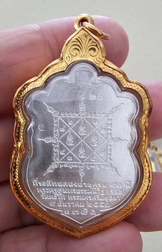 หลวงพ่อรวย วัดตะโก จ.อยุธยา เสมา รวยมหาเศรษฐี ปี 2557 เนื้อเงินหน้ากากทองคำเลข 20 เลี่ยมทองสวยๆ