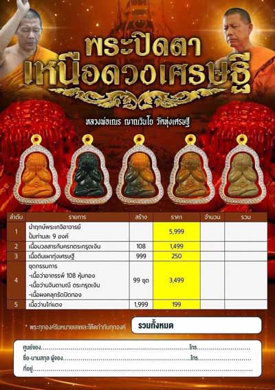 พระปิดตาเหนือดวงเศรษฐี เนื้อนำฤกษ์พระเกจิอาจารย์ ปั๊มท่านละ 9 องค์ หลวงพ่อเณร ญาณวินโย วัดทุ่งเศรษฐี กรุงเทพฯ หลวงปู่มหาศิลา หลวงปู่เวิน พระอาจารย์ต้อม หลวงปู่มหาตุ่ม ร่วมปลุกเสก |