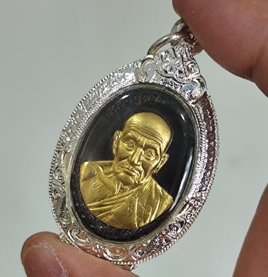 เหรียญ2อาจารย์ หลวงปู่ทวด-หลวงปู่ดู่ รุ่นเจ้าสัวพันล้าน (บอย ท่าพระจันทร์) เนื้อสัตตโลหะผสมชนวนหน้ากากทองทิพย์ โค๊ตเลข ๒๑๒๙ กล่องเดิม พร้อมกรอบเงินผสม