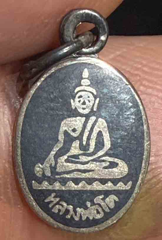 เหรียญเม็ดแตง หลวงพ่อโต วัดบางพลีใหญ่ใน เนื้อเงินลงถม (เคาะเดียว) |