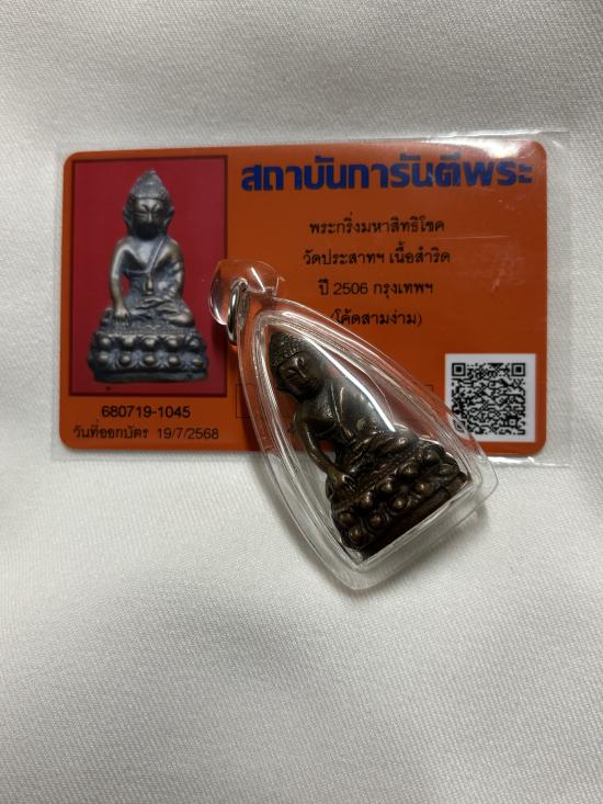 พระกริ่งมหาสิทธิโชค วัดประสาท ฯ เนื้อสำริด ปี2506 กรุงเทพฯ โค้ดสามง่าม ปลุกเสก พระอาจารย์ทิม หลวงปู่โต๊ะ หลวงพ่อเงิน หลวงพ่อกวย หลวงพ่อพรหม หลวงพ่อทบ หลวงพ่อจง หลวงพ่อสุด หลวงปู่เขียว หลวงปู่ดู่ ฯลฯ |