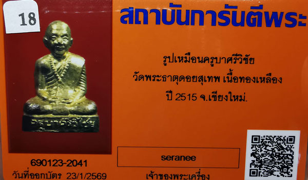 รูปเหมือนครูบาศรีวิชัย วัดพระธาตุดอยสุเทพ เนื้อทองเหลือง ปี2515 จ.เชียงใหม่ + บัตรG-pra สภาพเดิมค่ะ สภาพตามรูปทุกประการค่ะ