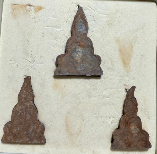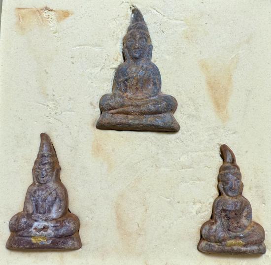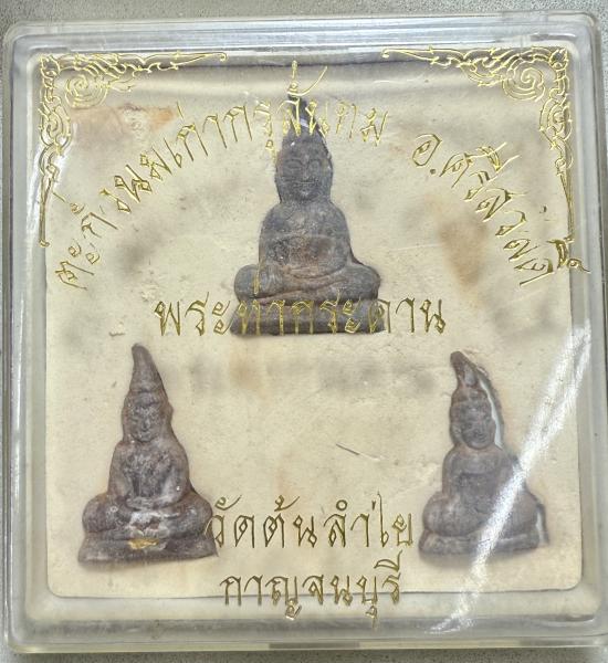 พระท่ากระดานวัดต้นลำใย จ.กาญจนบุรี เนื้อตะกั่วสนิมแดงกรุศรีสวัสดิ์ สภาพสวยพร้อมกล่องเดิมครบชุด 3 พิมพ์ พระเหมาบ้านมาลงวัดใจค่ะ |