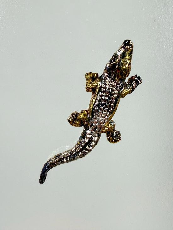 จระเข้อาคมทำด้วยโลหะ เป็นรูปจระเข้นอนอ้าปาก ลักษณะกำลังจู่โจมเหยื่อ เมื่อได้แล้วก็ให้เรียกสูตรเรียกนามกำกับตั้งแต่หัวถึงปลายหาง และเท้าทั้งสี่ให้ครบถ้วน ลงอักขระกำกับตามตำราต้องปลุกเสกให้เห็นในนิมิตว่าจระเข้เคลื่อนไหวไปมาได้จึงจะสำเร็จ สมัยรุ่นปู่ย่าตาทวดของผู้ถ่ายทอดนั้นถึงขนาดเสกแล้วเอาไปลอยในคลองหรือแม่น้ำ ภาวนาแล้วจระเข้จะเคลื่อนไหวว่ายน้ำได้เป็นอัศจรรย์ แต่มาถึงรุ่นี้เอาแค่นิมิตก็พอแล้ว