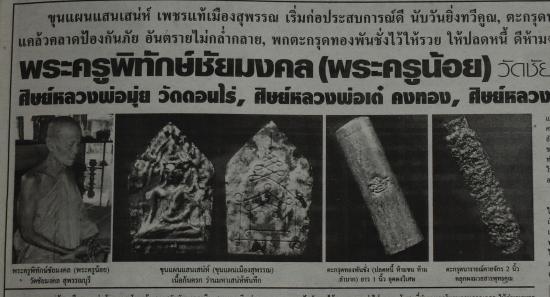 ข้อมูลเพิ่มเติม...ตะกรุดทองพันชั่ง พระครูน้อย วัดชัยมงคล ปี 2554 ปลดหนี้ ห้ามจน ห้ามลำบาก อุดผงวิเศษ มีอานุภาพดูดเงิน ดูดทอง มีเงินเต็มไห ได้ทองเต็มตุ่ม สร้างจำนวน 999 ดอก (มีโค๊ดกำกับทุกดอก ขนาดยาว 1 นิ้ว)