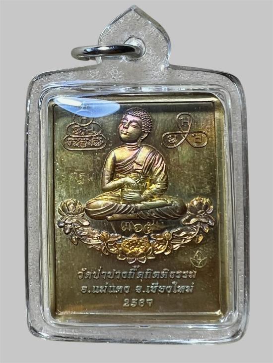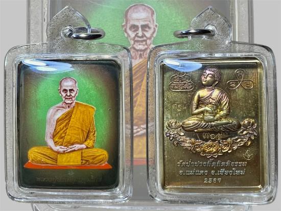 ล็อกเก็ตสี่เหลี่ยม หลวงปู่บัวเกตุ ปทุมสิโร รุ่นแรก ๒๕๖๗ ภายในบรรจุ เกศา+เล็บ ฉากเขียวหลังทองทิพย์ผิวรุ้ง