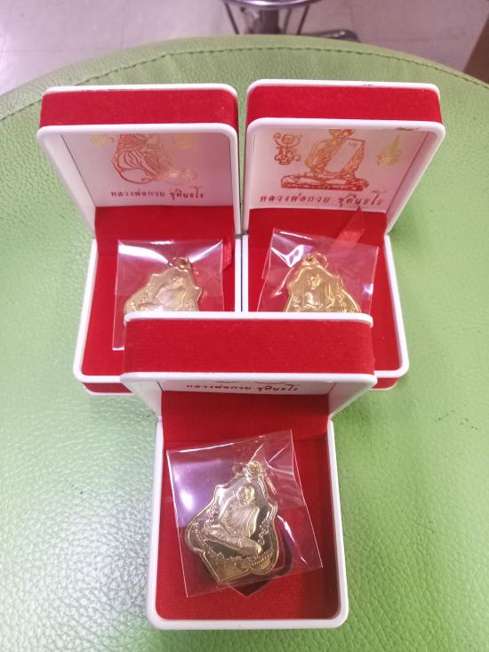 เหรียญหลวงพ่อกวย วัดโฆสิตาราม ปี66 เนื้อกะไหล่ทอง (จำนวน 3 เหรียญ) สวยเดิมๆพร้อมกล่องเดิม