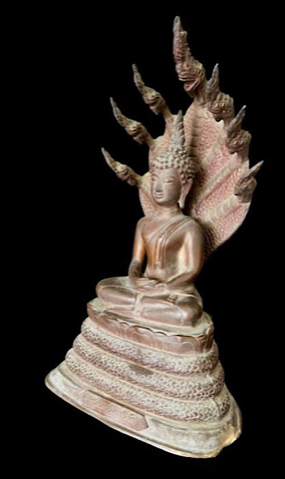 พระบูชาปางพระนาคปรก พิธี 25 ศตวรรษ สำนักพุทธรัตนประทีป เนื้อโลหะผิวสีแดงมันเทศ ถึงยุค หล่อหนา ก้นดินไทยสวยๆ ใต้ฐานปิดทับด้วยปูน ผิวเดิม หิ้งสุดๆ สวยมากๆ
