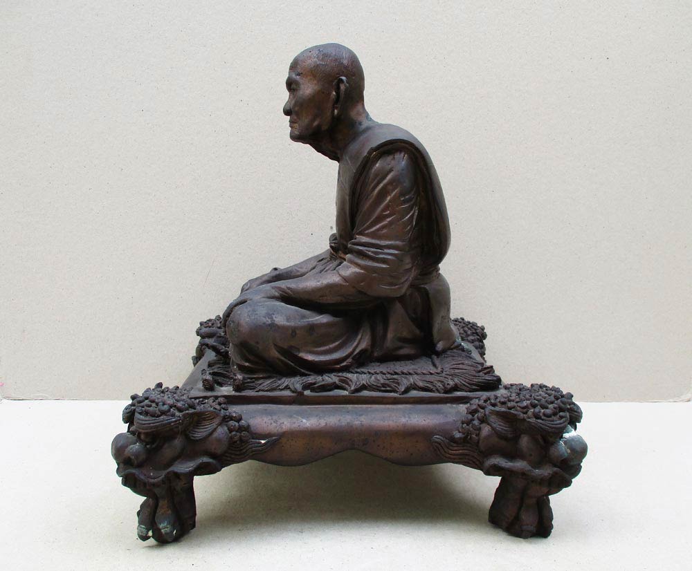 พระบูชารูปเหมือนนั่งโต๊ะหัวสิงห์ หลวงปู่คร่ำ ยโสธโร วัดวังหว้า จ.ระยอง รุ่น สรงน้ำเสาร์ห้า พ. ศ.2537 หน้าตัก 9 นิ้ว ตอกโค๊ต 3 โค๊ต ตอกเลข เนื้อทองเหลือง ผ ิวแห้งหิ้ง !!
