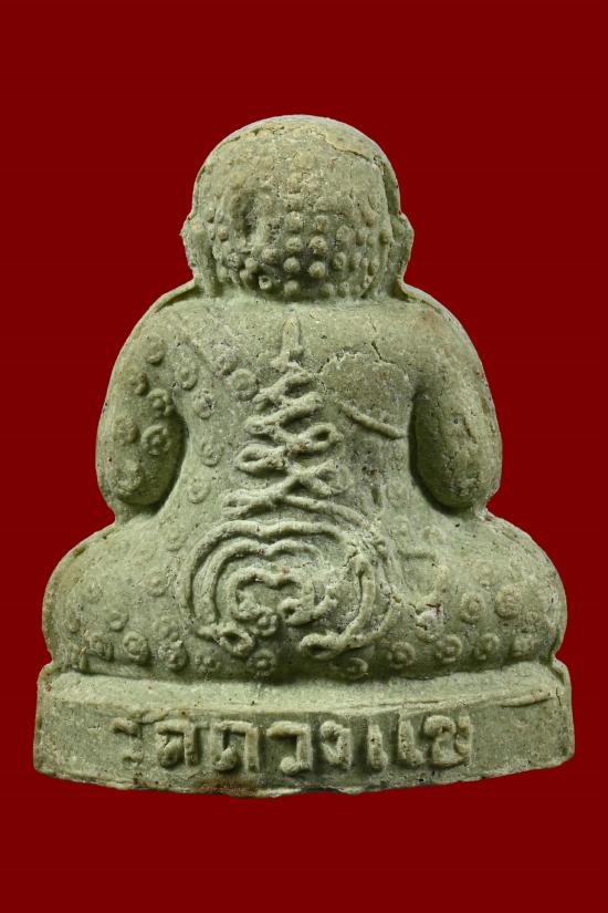 เนื้อพิเศษสีเขียว ว่านเสน่ห์ จันทร์ + ใบเตย จำนวนสร้างน้อย ใต้ฐานมีปั้มตรายางค์ 2 ดวง ครับ