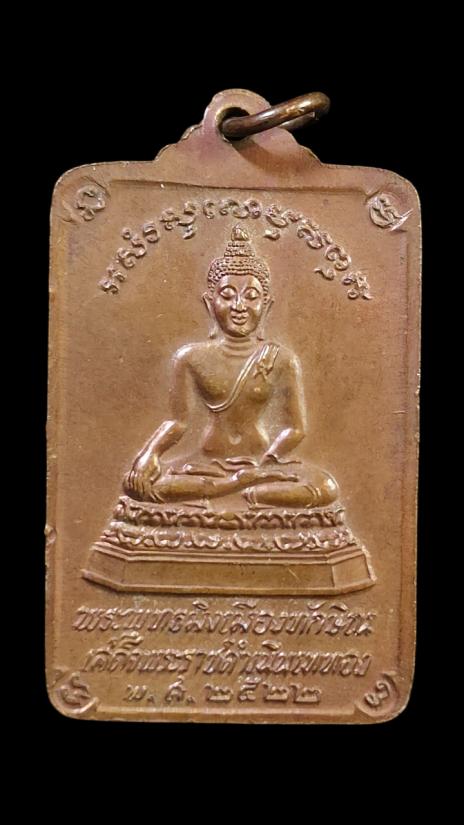 **100.** เหรียญพระพุทธมิ่งเมืองทักษิณ หลังพระบรมธาตุ นครศรีธรรมราช ในหลวงเสด็จพระราชดำเนินเททอง ปี 2522 |