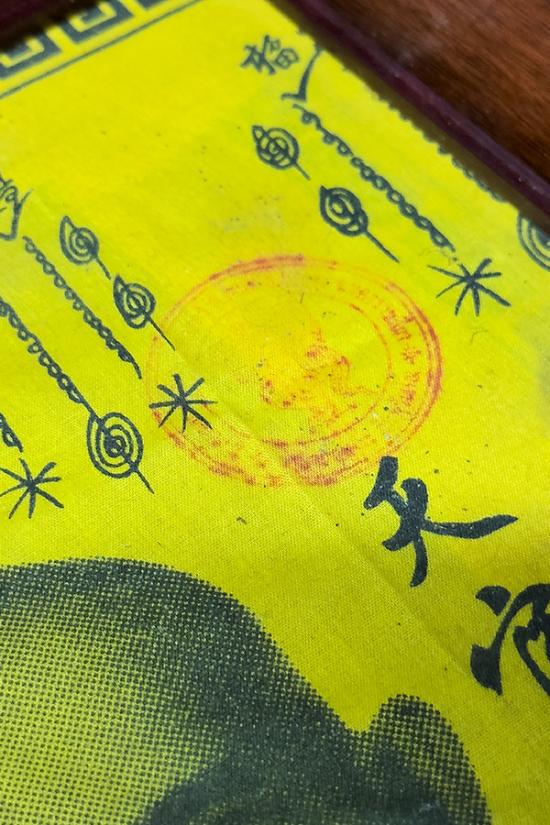 ผ้ายันต์เซียนแปะโรงสี ขนาดใหญ่พร้อมกรอบไว้บูชาติดผนังบ้านได้เลยครับ ขนาดรวมกรอบ กว้าง 12.6 นิ้ว สูง 17.4 นิ้ว สวยๆครับ ผมไม่ทราบที่ วัดใจขายทุกราคาจบเท่าไหนเอาเท่านั้นครับ |