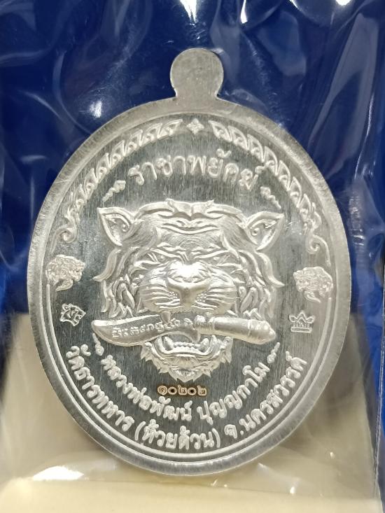 เหรียญ รุ่น ราชาพยัคฆ์ (เสือ2) หลวงพ่อพัฒน์ วัดห้วยด้วน จ.นครสวรรค์ เนื้อเงิน ลงยาลายเสือ หมายเลข 10202