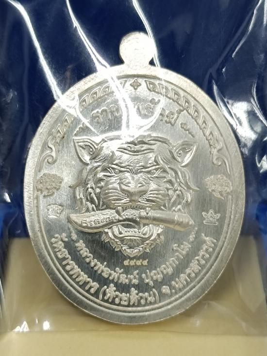 เหรียญ รุ่น ราชาพยัคฆ์ (เสือ2) หลวงพ่อพัฒน์ วัดห้วยด้วน จ.นครสวรรค์ เนื้อเงิน ลงยาลายเสือ หมายเลข 4994
