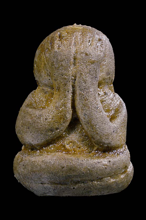 พระปิดตาลอยองค์ ( พิมพ์เล็ก หลังยานะนูน ) จัดสร้างโดย วัดโพธิ์ปรือแวง ( เนื้อผงพุทธคุณ ทาแชล็ค , สอดตะกรุดทองแดง ) พ.ศ.2529