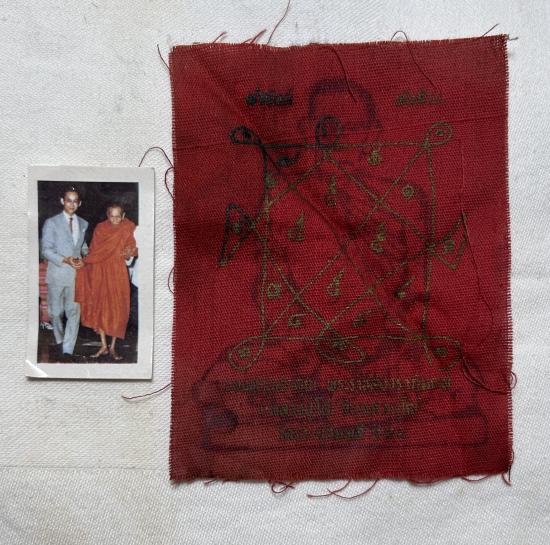 ผ้ายันต์หลวงปู่โต๊ะ พร้อมรูปหลวงปู่โต๊ะกับในหลวงไม่ทราบปี
