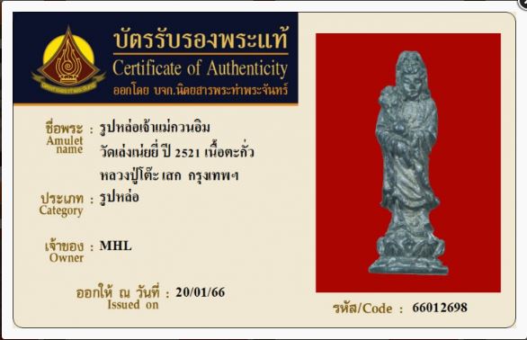 เริ่ม20 รูปหล่อเจ้าแม่กวนอิม หลวงปู่โต๊ะ เสก วัดเล่งเน่ยยี่ ปี 2522 เนื้อตะกั่ว กรุงเทพฯ เคาะเดียว สององค์ เพราะพระเหมามาซอยขายปลีก วัดใจเท่าไหนเท่านั้นทุกราคาครับ |