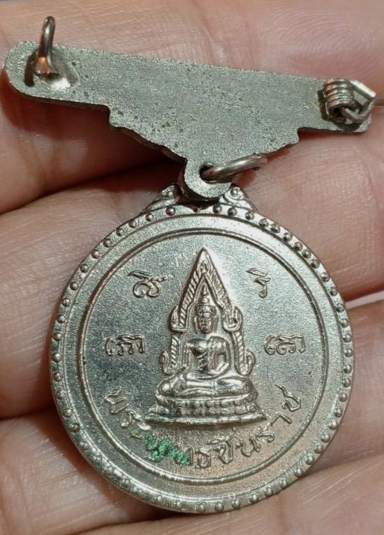 เหรียญพระพุทธนิมิตต์ หลังพระพุทธชินราช ที่ระลึกงานผูพัทธสีมา วัดแม่เทียบ พ.ศ.2517 พร้อมเข็มกลัดเดิม!