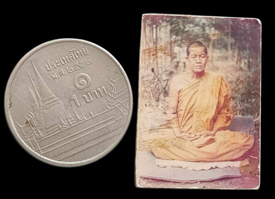 รูปถ่าย หลวงพ่อคำพอง ติสฺโส ( พระครูสุวัณโณปมคุณ ) วัดถ้ำกกดู่ อ.หนองวัวซอ จ.อุดรธานี หลังแผ่นตะกั่วจารด้วยเหล็ก