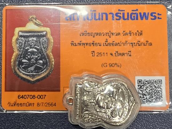 เหรียญพิมพ์พุทธซ้อนปี 11 หลวงปูทวด เนื้ออัลปาก้าชุบนิกเกิล สวยๆเดิมๆ พร้อมบัตรรับรอง