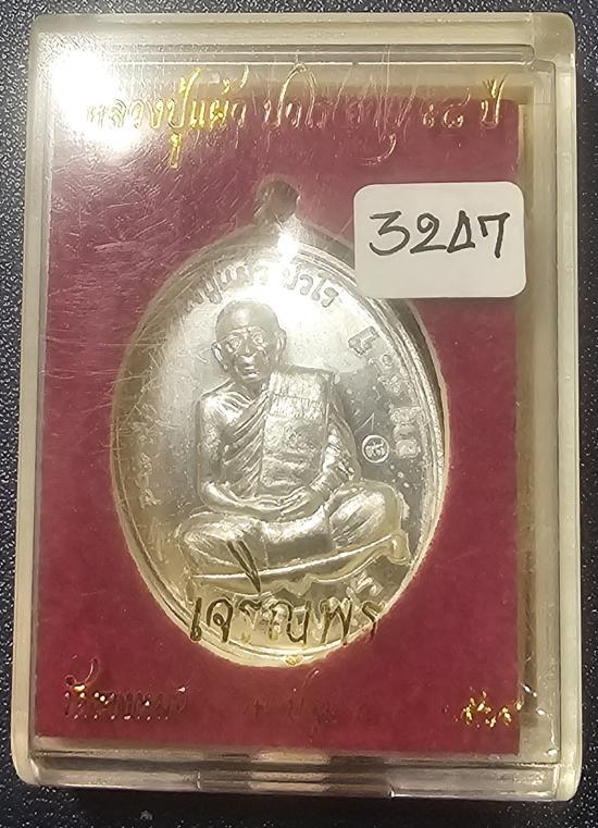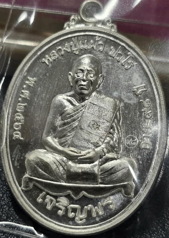 เหรียญเจริญพรล่าง หลวงปู่แผ้ว วัดรางหมัน เนื้อเงิน no.3247 สวยๆ พร้อมกล่องเดิม