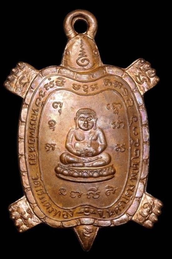 เหรียญพญาเต่าเรือน หลวงปู่หลิว วัดไร่แตงทอง นครปฐม รุ่นไตรมาสเล็ก 3 แชะ เนื้อทองแดง
