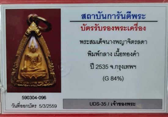 พระสมเด็จนางพญาจิตรลดา พิมพ์กลาง เนื้อทองคำเลี่ยมกรอบทองกันน้ำสั่งทำพร้อมบัตรรับรองสวยเดิมๆ