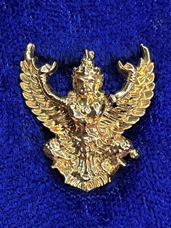 พญาครุฑ หลวงพ่อวราห์ วัดโพธิทอง รุ่นมีแล้วรวย ปี 38 เนื้อกะไหล่ทอง ตอกโค็ด ว กงจักร เคาะเดียวแดงครับ