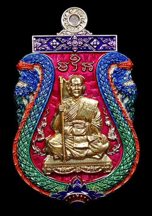 1 ใน 10 เหรียญเสมาพญาเสืออุดมทรัพย์ พระอาจารย์ประสูติ (หลวงพ่อประสูติ) วัดในเตา จ.ตรัง เนื้ออัลปาก้าลงยาชมพูเพ้นท์พญานาคหน้ากากชุบทองกรรมการ ติดหน้ากากทองระฆังเ เลขเสวยNO.1(เลขแม่ทัพที่สุดของเลขผู้นำ)