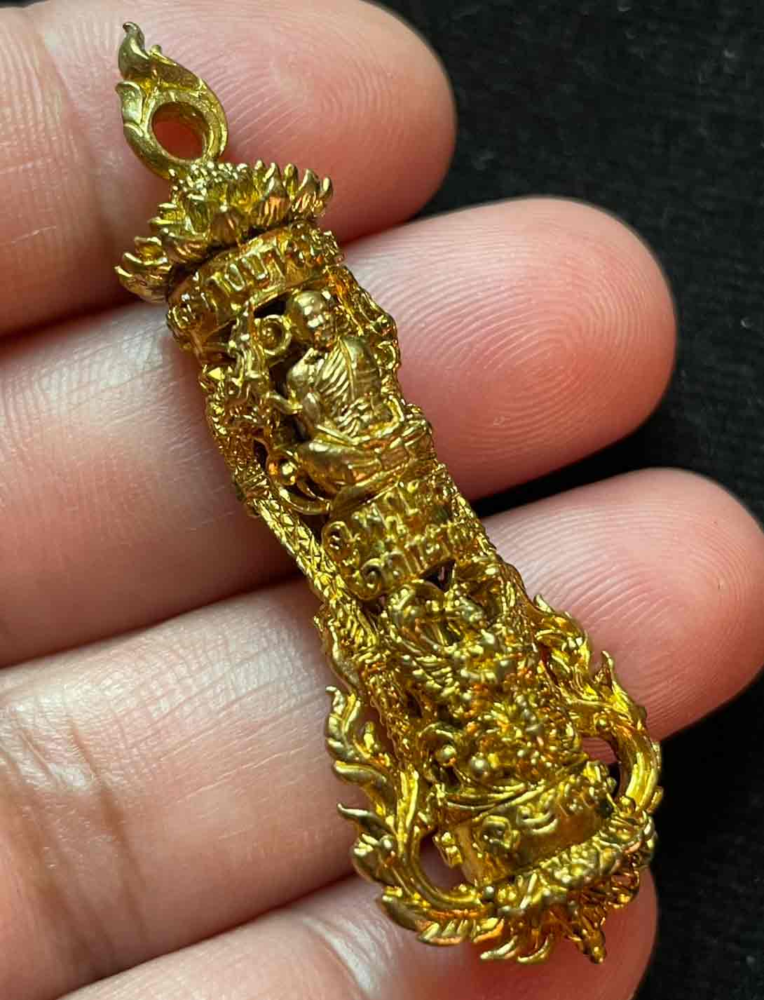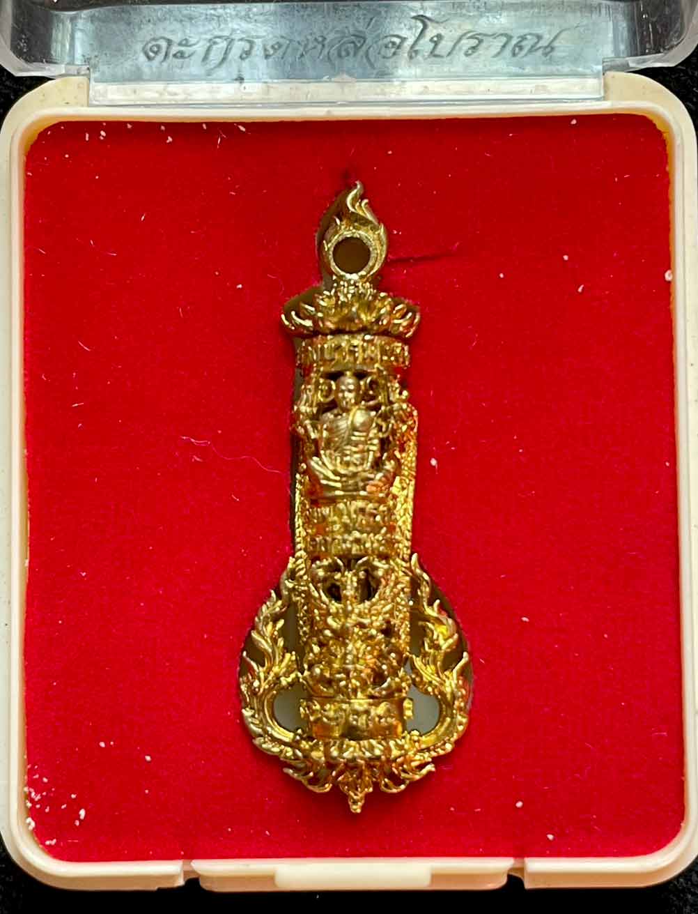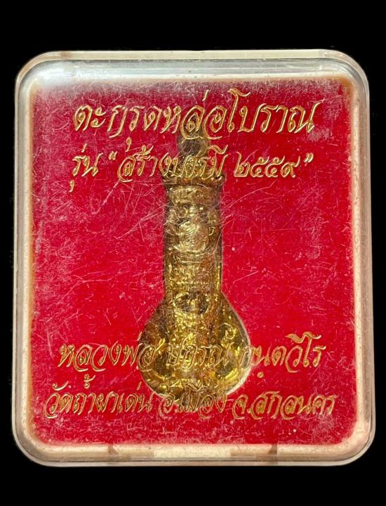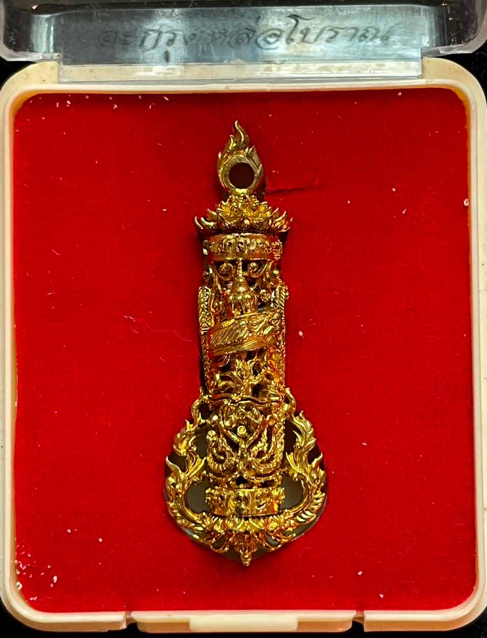 วัดใจ ตะกรุดหล่อโบราณ พญาครุฑ มีตะกรุดด้านใน หลวงพ่อปกรณ์ วัดถ้ำผาแด่น จ.สกลนคร ปี 2559 กล่องเดิม