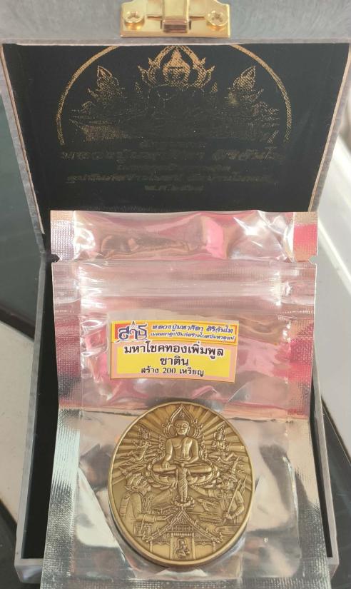 เหรียญแกะสด พุทธศิลป์ "สาธุ" หลวงปู่ศิลา สิริจันโท อุปถัมภ์สร้างโบสถ์มหาอุตม์ วัดบ้านโนนเดื่อ จ.ร้อยเอ็ด เนื้อมหาโชคทองเพิ่มพูล เลข ๑๖๔ พร้อมกล่อง สร้าง๒๐๐เหรียญ วัดที่ลป.ศิลาเคยจำพรรษา