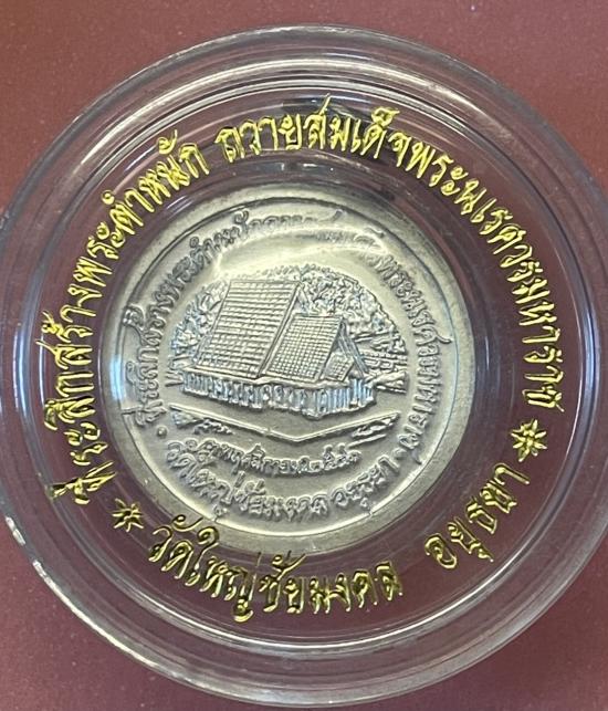 เหรียญกลม เนื้อเงิน รุ่นสู้ชนะ พระนเรศรมหาราชที่ระลึกสร้างพระตำหนักถวาย พระนเรศร วัดใหญ่ชัยมงคล ปี 2541 สวย