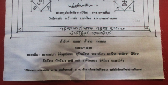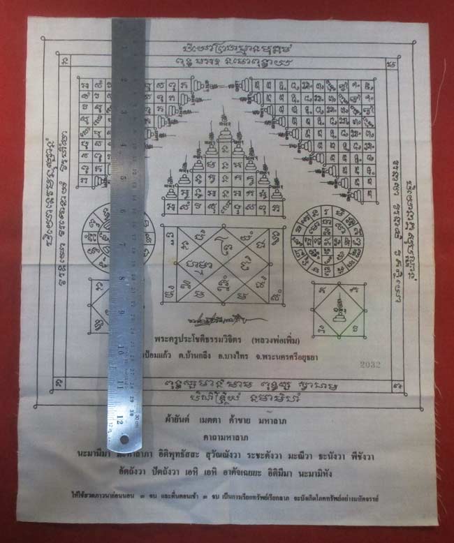 ผ้ายันต์ หลวงพ่อเพิ่ม วัดป้อมแก้ว ต.บ้านกลึง อ.บางไทร จ.พระนครศรีอยุธยา ครับ (พระบ้าน ครับ)